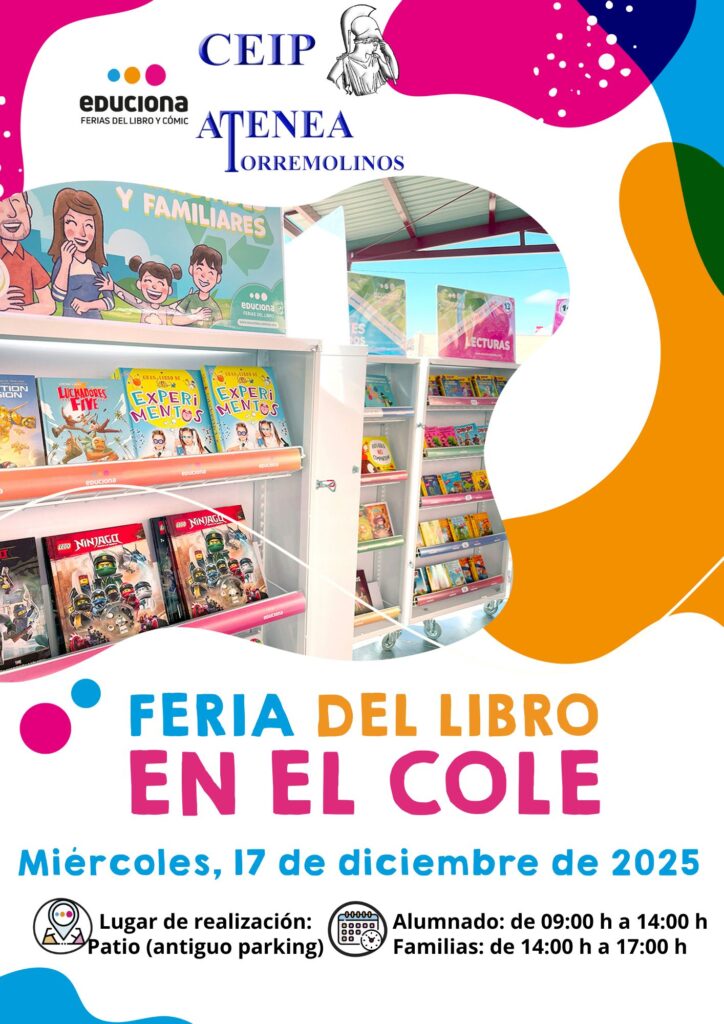 La Feria del Libro celebrada en el CEIP Atenea de Torremolinos ha sido todo un éxito, organizada con motivo de la conmemoración del Día de la Lectura en Andalucía y con un marcado carácter solidario. Esta iniciativa no solo ha fomentado el gusto por la lectura entre el alumnado, sino que también ha tenido como objetivo apoyar una buena causa: la donación del 5 % de las ventas obtenidas a los hijos e hijas de las víctimas de violencia de género.
